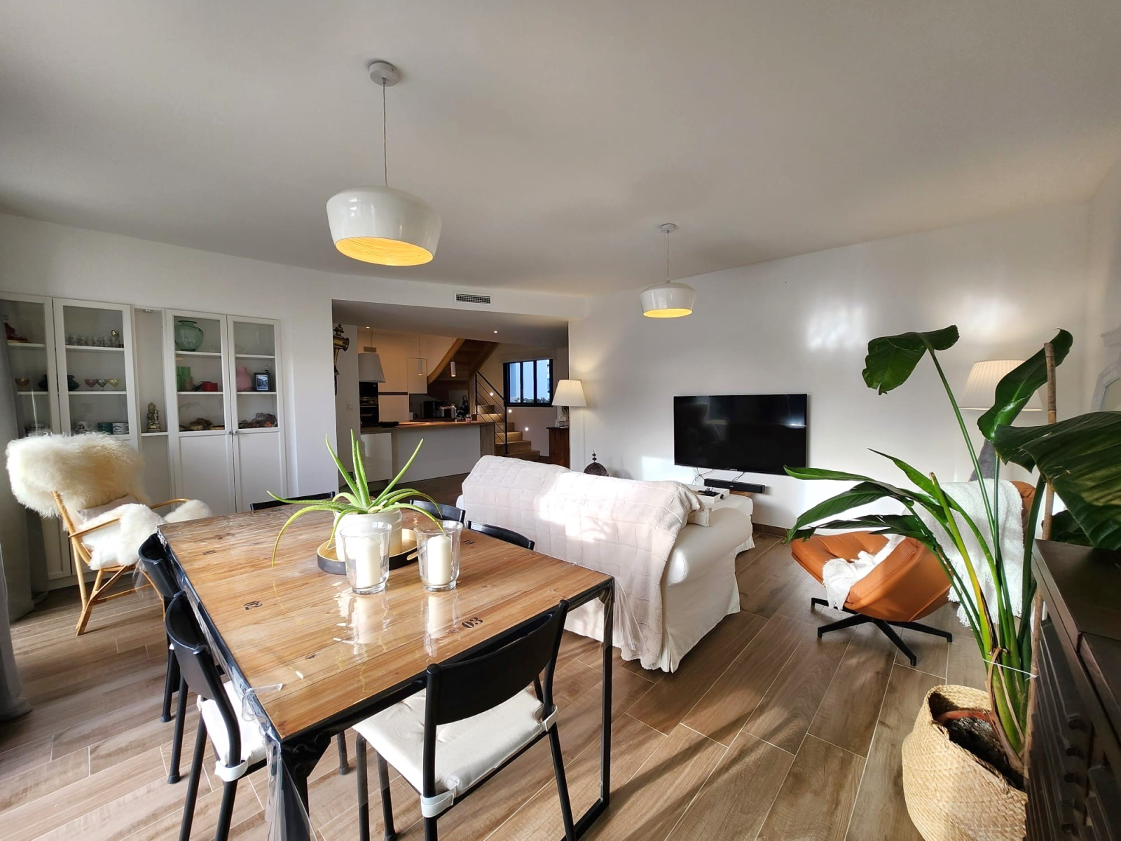 En un lieu calme et paisible, ce joyau de modernité de 2020 saura vous séduire par sa vie de plain-pied. L'entrée avec placard dessert une pièce de vie spacieuse et lumineuse avec sa cuisine ouverte aménagée et équipée. La suite parentale (avec sa douche à l'italienne) en rez-de-chaussée vient compléter ce niveau.